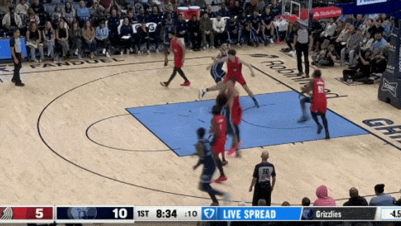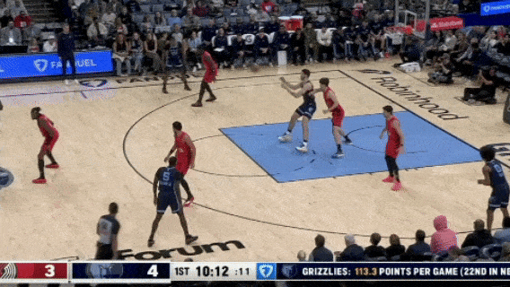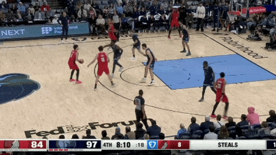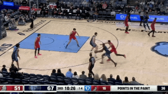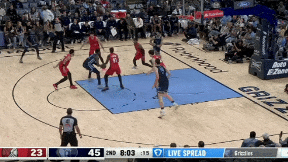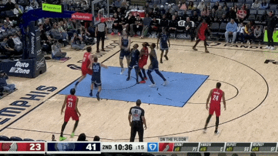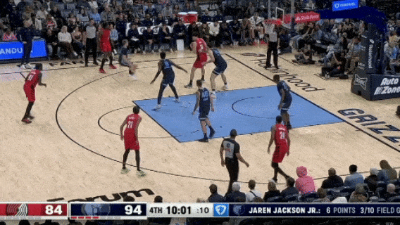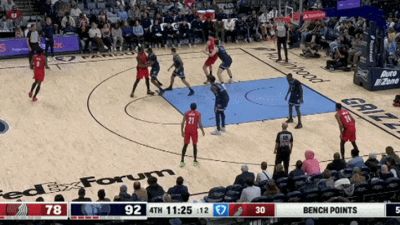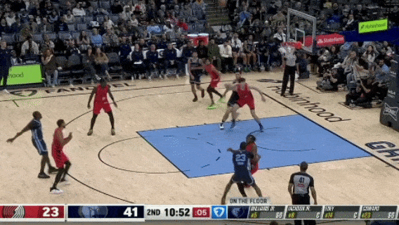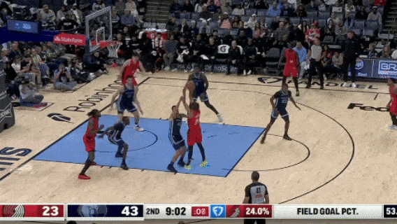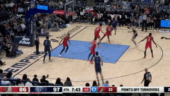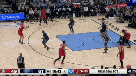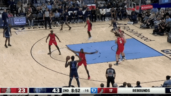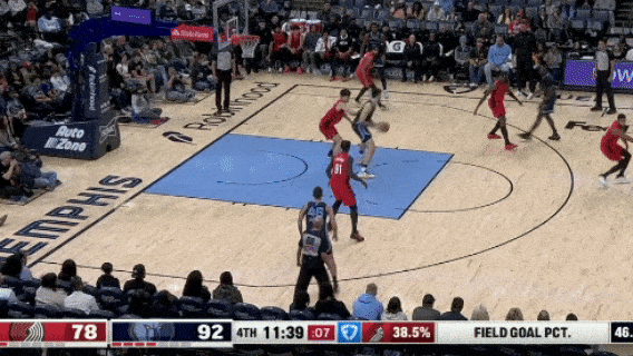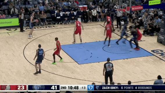 杨瀚森低位要球背身单打伊迪,开拓者四名球员拉开到三分线外,给足杨瀚森单打的空间,杨瀚森在骗到伊迪重心前移后,立刻后转身甩开他,双手暴扣得分。