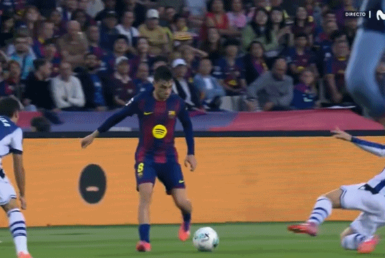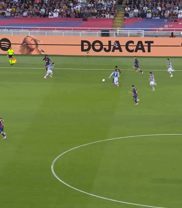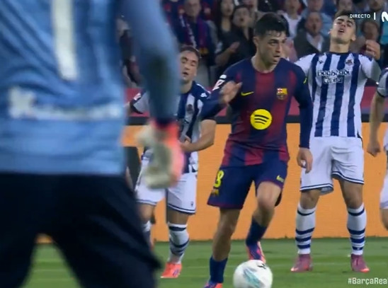 比赛中,佩德里丝滑带球过掉了皇家社会球员巴雷内切亚,后者无奈摊手。
